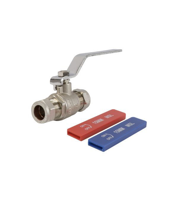 15mm Compression Lever Ball Valve - Red & Blue Handle