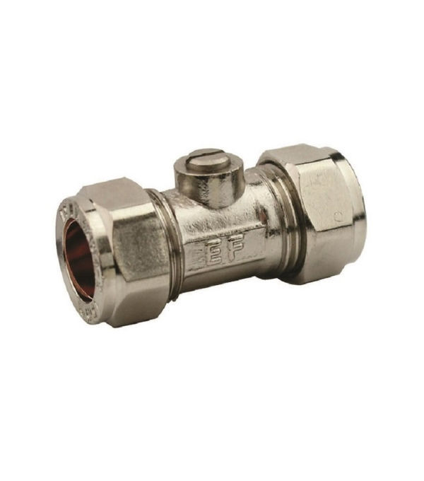 The Navigator 15mm Chromed Brass Isolating Valve BFIV-15 is supplied with olive nut ends for easy installation. Designed for reliable water control in plumbing and central heating systems, it provides durable performance and a professional standard for trade and DIY installations.