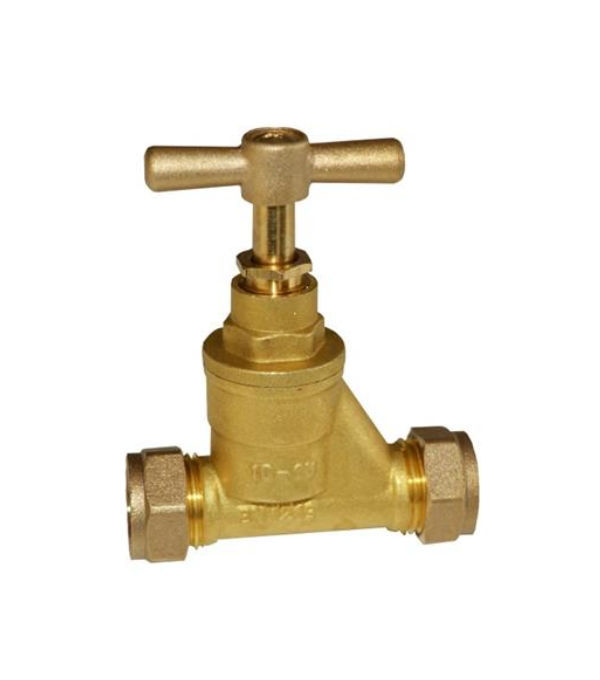 The GENBRA 22mm BS Stop Tap (Item No. BFST-22) is a durable brass compression stop tap designed for controlling water flow in domestic plumbing systems. Supplied with pre-loaded olives in the compression nuts for quick and secure installation. WRAS approved and suitable for both hot and cold water systems.