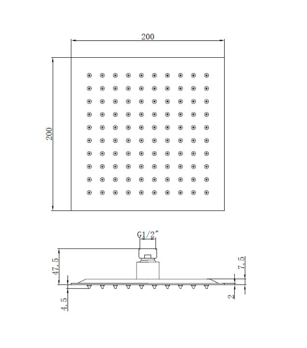 200mm square shower head