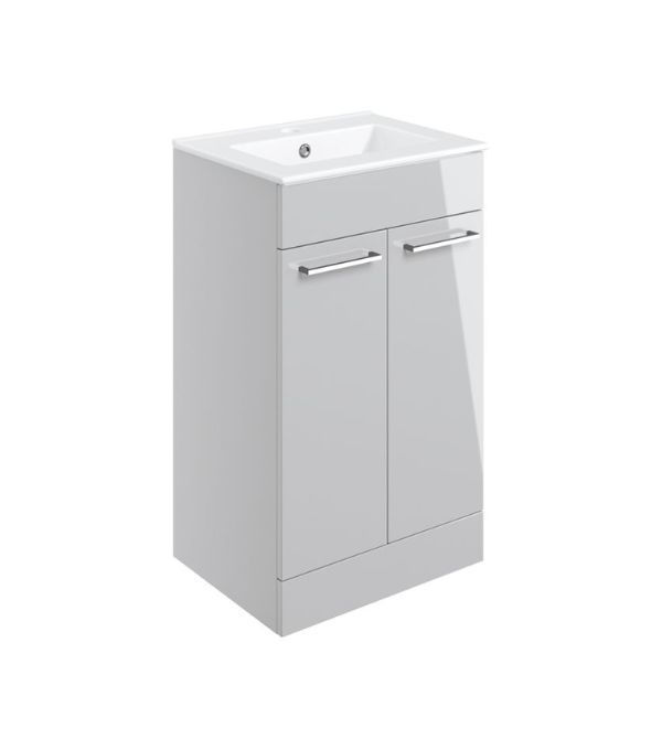 Avon 510mm Floor Standing 2 Door Basin Unit & 1TH Thin Edge Basin - Grey Gloss