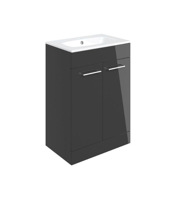 Avon 610mm Floor Standing 2 Door Basin Unit & 1TH Thin Edge Basin - Anthracite Gloss