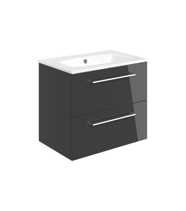 Avon 610mm Wall Hung 2 Drawer Basin Unit & 1TH Thin Edge Basin - Anthracite Gloss
