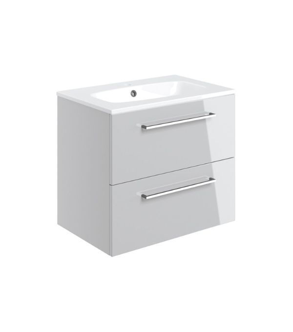 Avon 610mm Wall Hung 2 Drawer Basin Unit & 1TH Thin Edge Basin - Grey Gloss