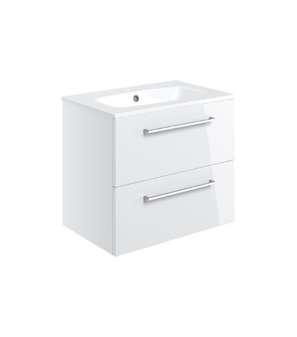 Avon 610mm Wall Hung 2 Drawer Basin Unit & 1TH Thin Edge Basin - White Gloss