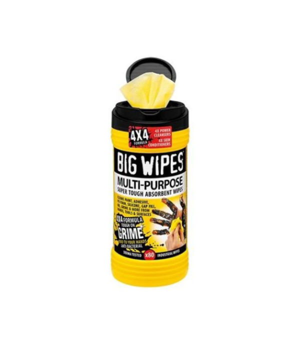 The unique biodegradable, water-based formulation of 4x power cleansers ensures the removal of paint, adhesives, oil, sealants, silicones, PU foam and general grime from hands, tools and surfaces. Preservative-free and designed to meet tough EU Regulation 1223/2009 for Cosmetic Products, Big Wipes Multi-Purpose wipes contain 4x skin conditioners - Aloe Vera, Lanolin, Vitamin E and Glycerine – all helping to nourish and protect the skin.