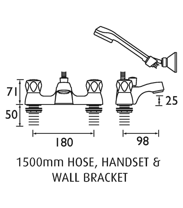 Includes 1.5m hose, handset and wall bracket
