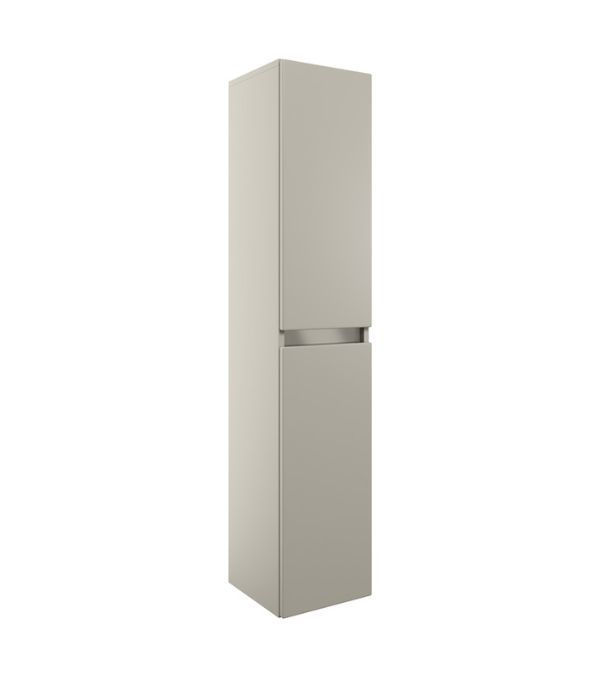 The Carton 300mm Wall Hung Tall Unit in matt latte provides modern, practical storage for bathrooms. Featuring two soft close doors with a fully handleless design, durable 18mm construction, and reversible door orientation, it can support up to 130kg and is backed by a 5-year guarantee for lasting quality.