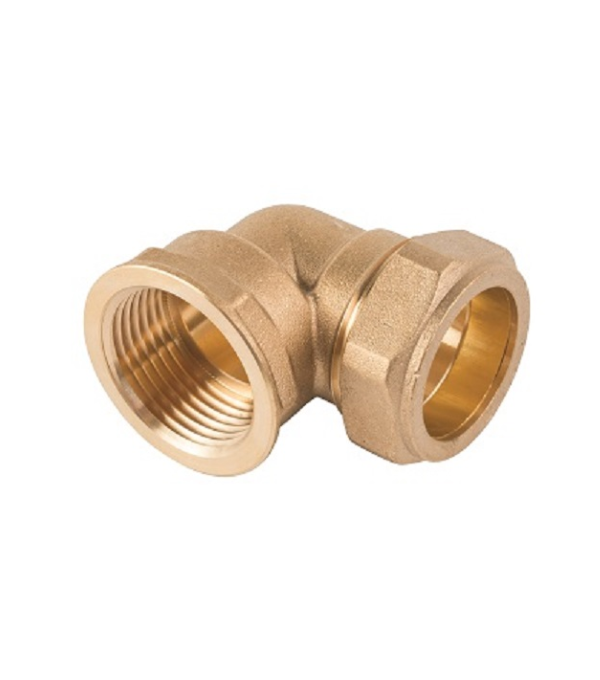 Compression 15mm x 1/2" Female Iron 90 degree elbow - supplied with a pre-loaded olive in compression nut.