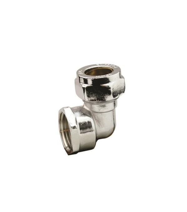 The Navigator Chrome Plated Compression 15mm x 1/2" FI 90-Degree Elbow offers a durable and attractive solution for plumbing connections. Supplied with a pre-loaded olive in the compression nut, it ensures secure and leak-free performance. Ideal for modern plumbing systems.