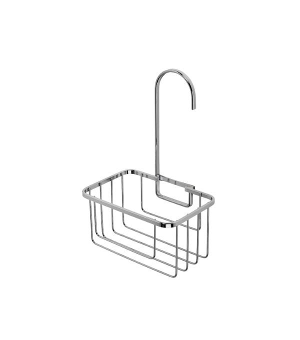 Contemporary hook over shower caddy with self-adhesive pad to secure caddy in place