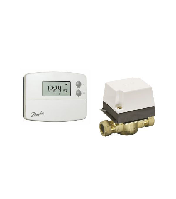 The Danfoss UNTIMED‑HP22(2)‑TP5000(2)‑WB Control Pack (part 087N6520H4) is a comprehensive two-zone heating control solution combining 2 motorised HP22 valves, 2 TP5000 programmable room thermostats and a wiring centre. Although now discontinued, it remains a high-quality option for reliable, untimed zone control in domestic heating systems.