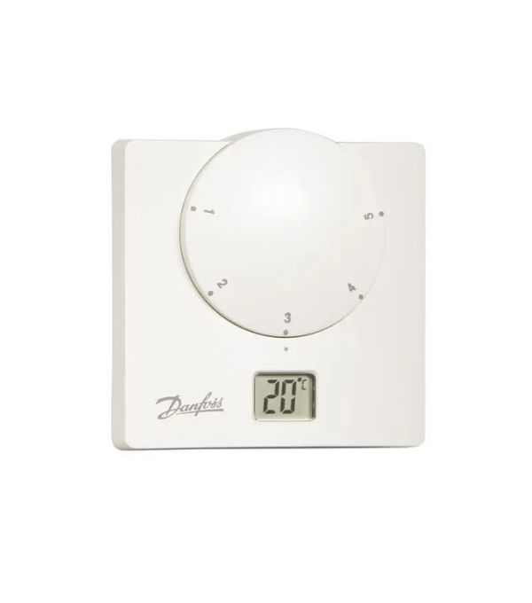 The Danfoss RET1001M (part number 087N6460) is a mains‑powered 230 V dial room thermostat offering straightforward, reliable temperature control. With intuitive dial settings, integrated frost‑protection and LED indicators for power and heat demand, this unit streamlines heating regulation for domestic or light commercial systems.