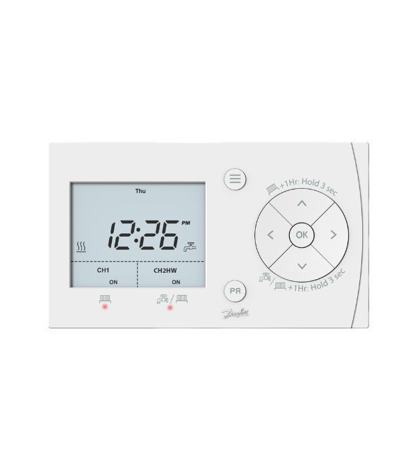 The Danfoss FP720 V2 Two‑Channel Programmer (230 V, part 087N7885) offers flexible dual‑channel scheduling for heating or heating plus hot‑water systems. With a large back‑lit display, intuitive programming for 7‑day, 5/2‑day or 24‑hour modes, and independent control of two outputs, it’s a smart upgrade for energy‑efficient system control.