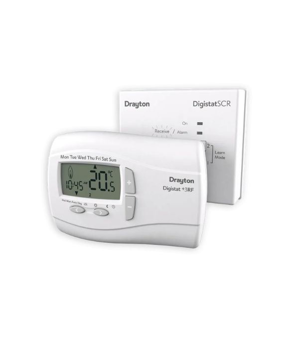 The Drayton RF701 Digistat +3Rf Wireless is a versatile, battery-powered 7-day programmable room thermostat, perfect for upgrading your heating system. With 3 pre-defined programs, easy temperature override, and holiday mode, it ensures effortless control of your home's comfort. Its LCD display, tamper-proof settings, and automatic summer/winter time change make it ideal for any heating system, offering reliability and convenience.