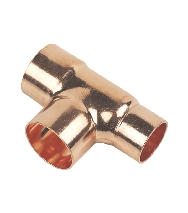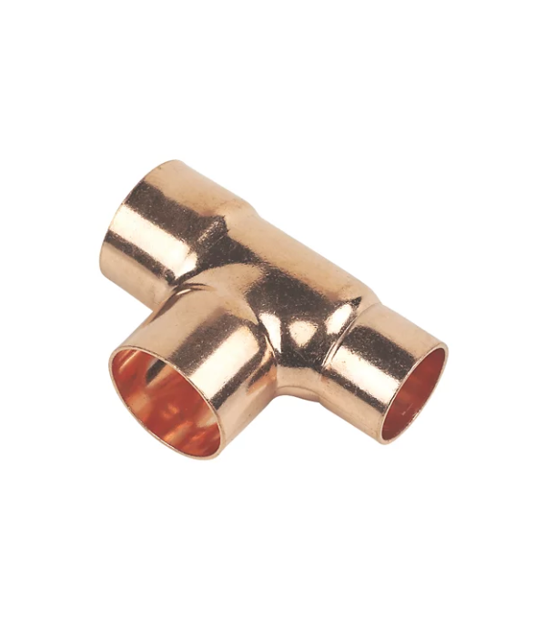 This copper end feed reducer tee is perfect for reducing the size of a 28mm copper pipe while maintaining two strong connections. It has 28mm, 22mm, and 28mm outlets, making it suitable for use in hot and cold water services.
