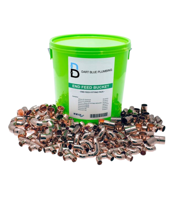 The Endfeed Fittings Bucket 180 Piece is a handy bucket of the most popular and standard copper endfeed fittings. These fittings are WRAS approved and suitable for use on hot and cold water services, heating installations, fuel services and industrial engineering applications.The bucket contains a mix of 15mm and 22mm fittings, including: