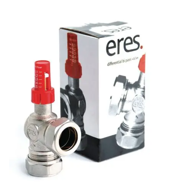 The Altecnic Eres 22 mm angled automatic bypass valve (ER‑22MMANGBI) ensures stable flow in central heating circuits by opening on rising differential pressure. This differential bypass valve helps protect your pump and system when radiator valves close, with a 1–5 m head adjustment range and a rugged chrome-plated brass build rated to 10 bar and 100 °C.