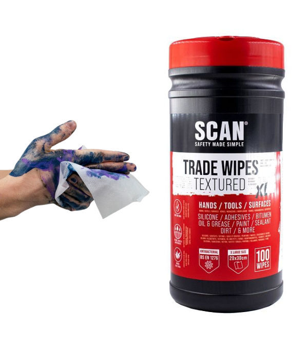 Each recyclable tub contains 100 x XL (20cm x 30cm) Scan Trade Wipes.