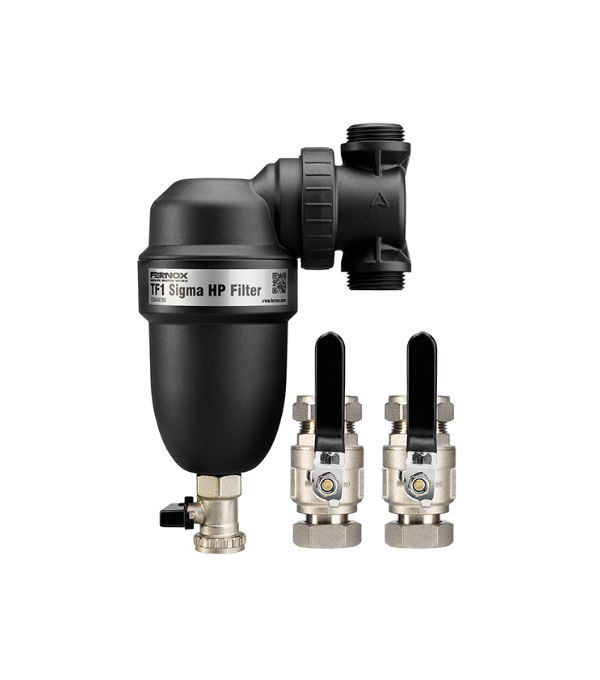 The Fernox TF1 Sigma HP Filter 62615 is a high-performance, 28mm filter designed to protect Air and Ground Source Heat Pump systems. Its unique, patent-pending technology removes all types of system debris without restricting flow, preserving energy efficiency and system performance. Built from durable, hydrolysis-resistant polymer with full bore brass valves for superior reliability.