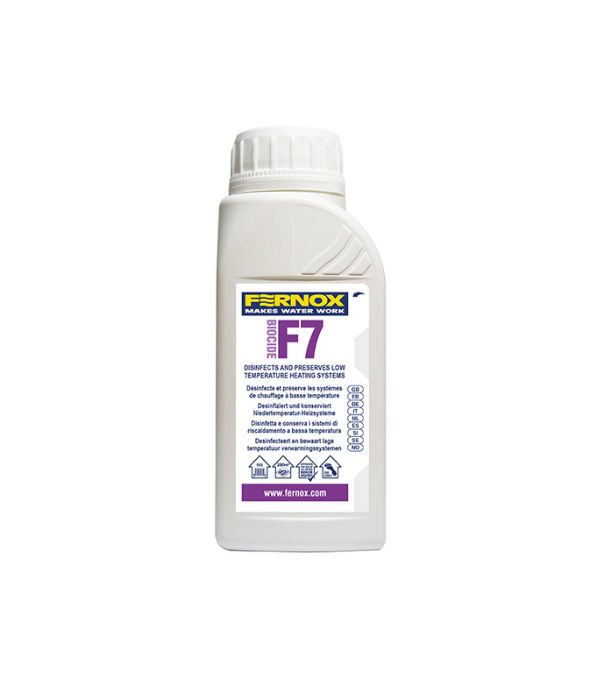 A single 200ml bottle of Biocide F7 treats up to 250m2 of underfloor systems and 150 litres of system volume