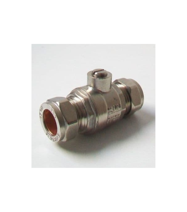 15mm Brass Heavy Pattern/Full Bore isolating valve - supplied with an olive in nut ends. A heavy-duty isolating valve with a large bore for the best flow is designed to accommodate 15 mm pipe with compression fittings. Can be applied on the majority of pipe types, including plastic, chrome, stainless steel, and copper pipes. If you're utilising plastic pipe, pipe stiffeners and liners are required. This valve has a higher stem and two seals rather than one to increase longevity and decrease leakage risk.