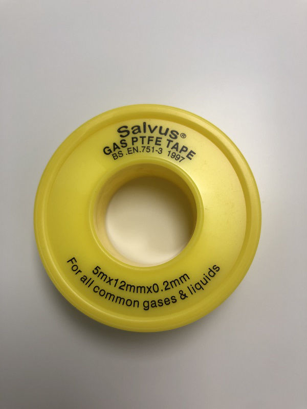 13mm width x 5m roll (0.2 thickness) yellow gas approved PTFE tape.