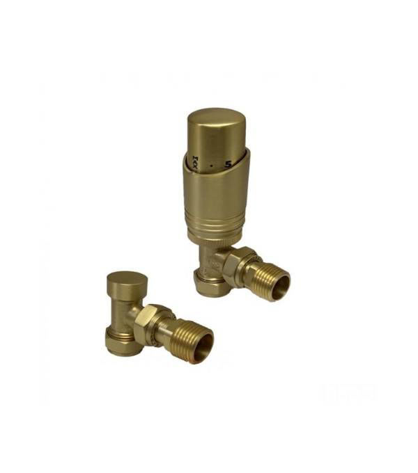 Kartell Design Style 15mm TRV Angled & Lockshield - Twin Pack - Brushed Brass