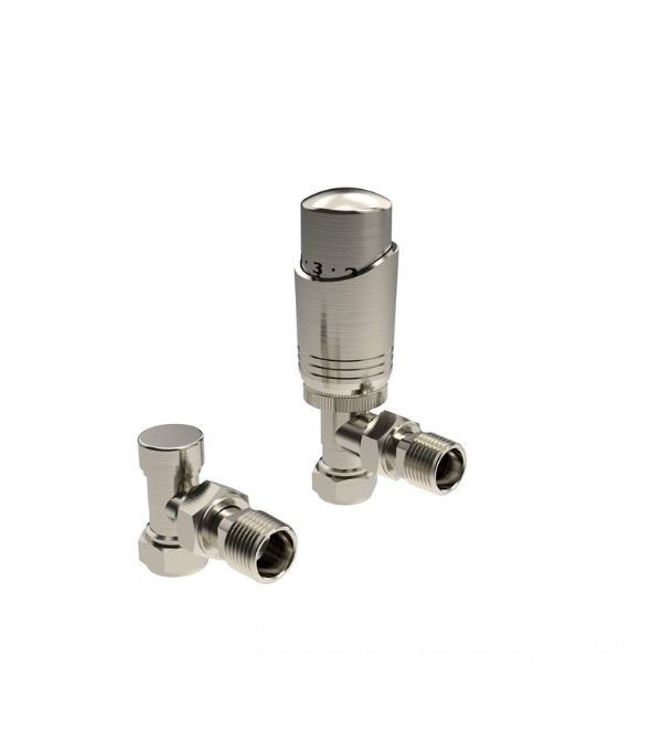 Kartell Design Style 15mm TRV Angled & Lockshield - Twin Pack - Brushed Nickel