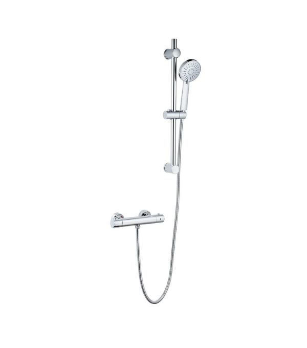 Kartell Plan Thermostatic Bar Shower Valve With Round Adjustable Slide Rail Kit - Chrome