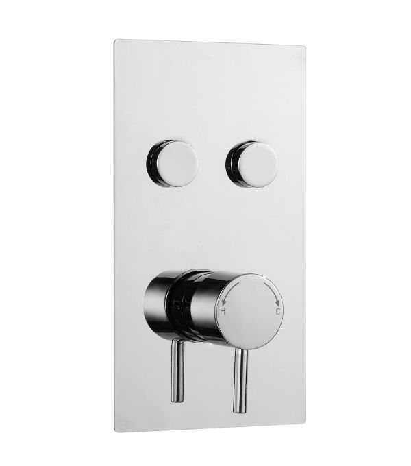 Kartell Plan Twin Concealed Thermostatic Shower Valve - Round Handle and Double Push Button - 2 Oulet - Chrome