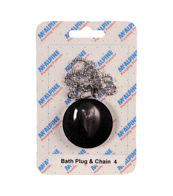 The McAlpine Bath Plug & Chain CARD-4 140mm x 90mm is a durable and reliable solution for sealing baths. Designed for easy use, the plug ensures a watertight fit while the attached chain provides convenient handling. Ideal for domestic bathrooms, it combines functionality with a simple design to offer a practical and long-lasting solution for bathwater retention. Compatible with standard bath waste outlets, the CARD-4 plug is easy to install and maintain.