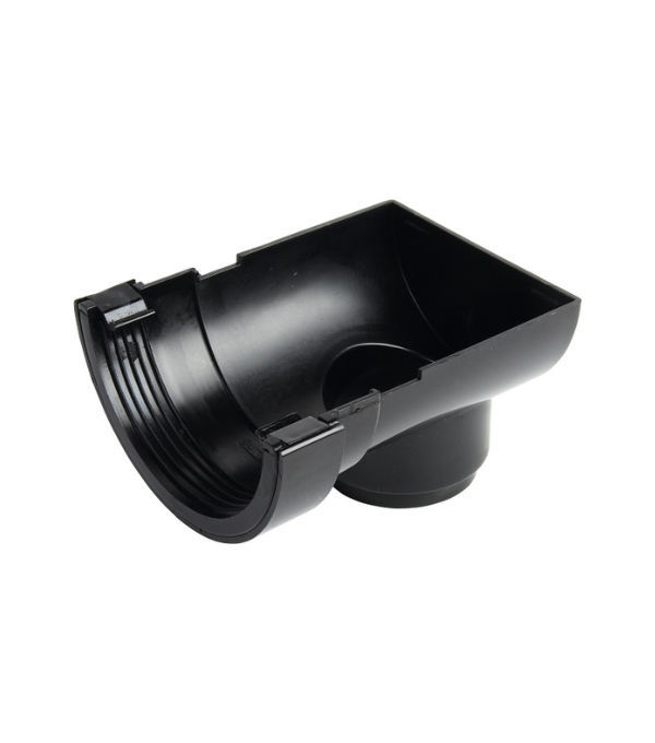 The Wavin Osma RoundLine OT007B Stopend Outlet in black is a durable PVC-U fitting designed to cap and redirect rainwater flow in gutter systems. Its robust construction ensures reliable performance and easy installation for roofing and drainage projects.