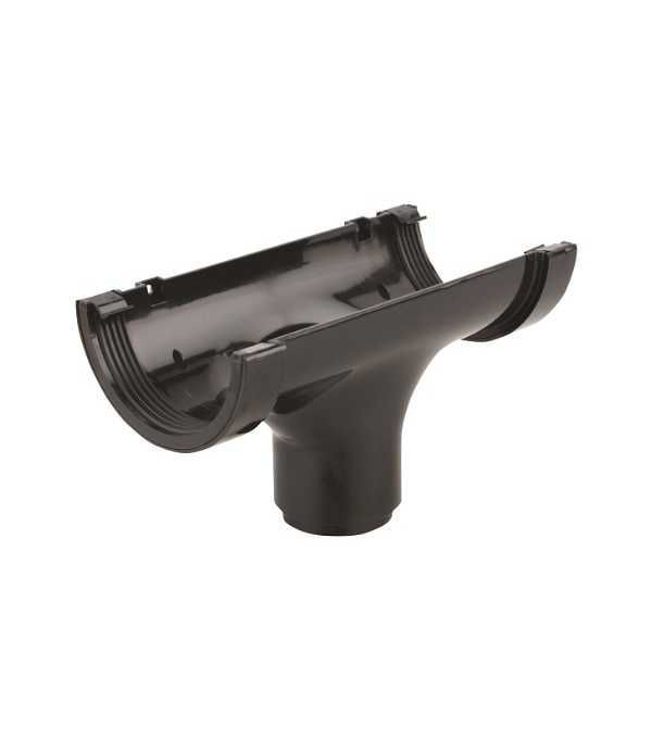 The Wavin Osma RoundLine OT624B Running Outlet in Black is designed to connect 112mm RoundLine guttering to 68mm downpipes, facilitating efficient rainwater drainage in domestic settings. Constructed from durable PVC-U, this fitting ensures a secure and watertight connection. Its hydrodynamic outlet design allows for high flow capacity, handling roof areas up to 163m² with a single downpipe. Ideal for new installations or guttering replacements, the OT624B offers both functionality and aesthetic appeal.