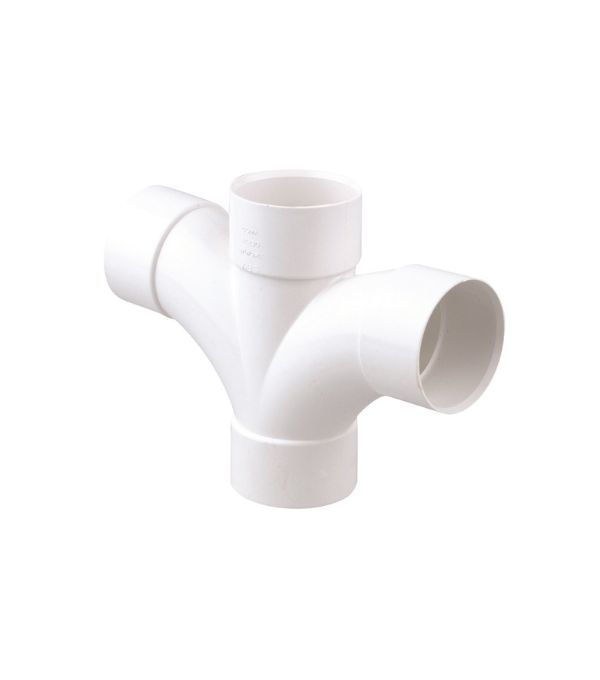 The Wavin Osma Solvent 2Z230W 50mm Cross Tee 90° in White is a durable PVC-U fitting designed for creating four-way connections in plumbing and drainage systems. Ideal for both domestic and commercial use, this solvent-weld cross tee ensures a watertight, long-lasting joint between 50mm pipes. Its robust construction provides excellent chemical and corrosion resistance, making it perfect for waste and vent applications where reliability is essential.