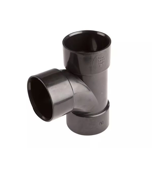 The Wavin OsmaW 50mm ABS Tee 90° (2Z190B) is a robust black waste pipe fitting for branching 50mm waste systems. Made from high-quality ABS, it delivers excellent durability and chemical resistance for professional plumbing installations.