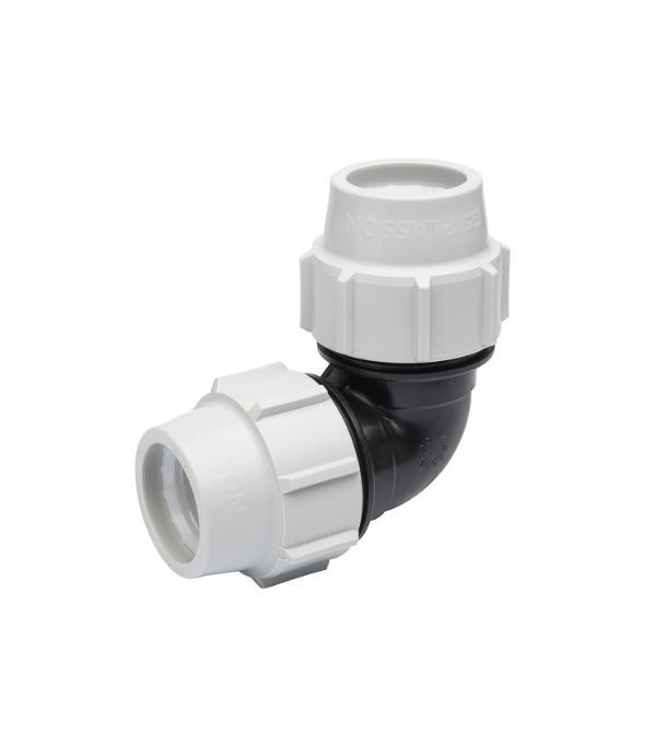 The Plasson 7050 20 mm 90° Elbow (PL070500020) is a WRAS-approved MDPE compression fitting designed to change the direction of 20 mm metric PE pipes. Rated up to 16 bar, this elbow ensures leak-proof, durable performance for potable water, mains supply, plumbing, and irrigation systems. Quick and easy to install with compression ends, it provides reliable flow control and long-lasting pipe connections for professional water installations.