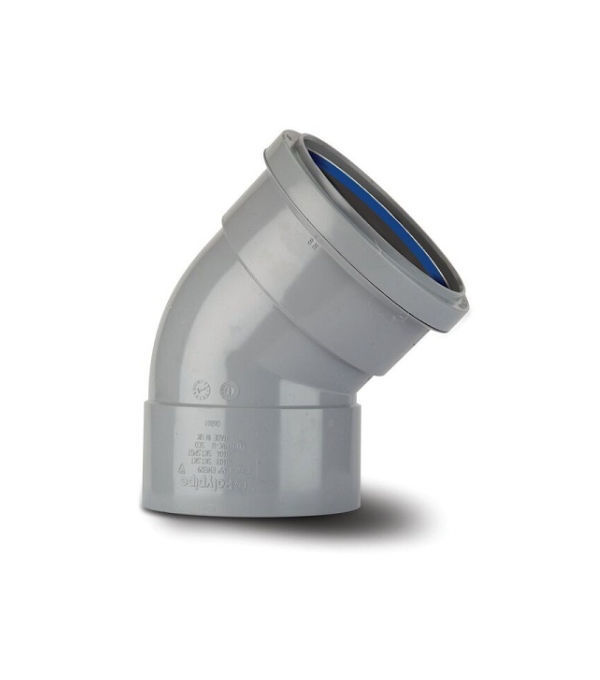 The Polypipe SB403G 4in/110mm Offset Bend 135° (Ring Seal Socket x Solvent Socket) is a durable PVC-U fitting designed for soil, waste, and vent pipe systems. Its 135° offset allows smooth directional changes while maintaining efficient flow, and the ring seal x solvent socket connection ensures a secure, leak-free joint. Suitable for domestic and commercial plumbing applications, this bend is easy to install and provides long-lasting, reliable performance. Available at Plumbco for professional plumbing solutions.