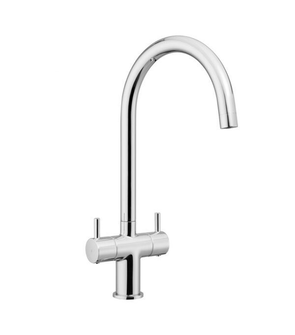 The Rangemaster Aquaswan TSW1CM Dual Lever Monobloc Tap in Chrome combines modern design with practicality. Its dual lever handles offer precise control, while the anti-splash spout with honeycomb aerator ensures a smooth, splash-free water flow. Suitable for all water pressure systems, this WRAS-approved tap is perfect for any kitchen.