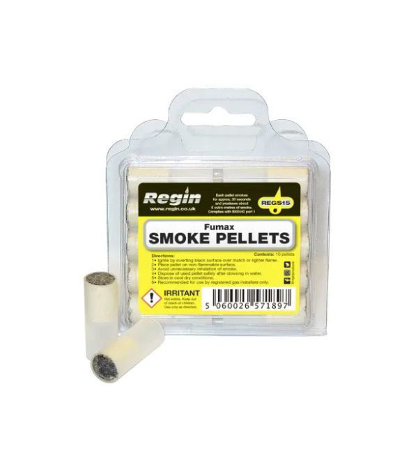 Fumax Smoke Pellets (Pack of 10) are designed for quick and effective visual air testing of flues, chimneys, drains and pipework. Each pellet produces dense smoke with an approximate 30 second burn time, making them ideal for detecting leaks, blockages and airflow issues. A reliable choice for professional plumbers and heating engineers.