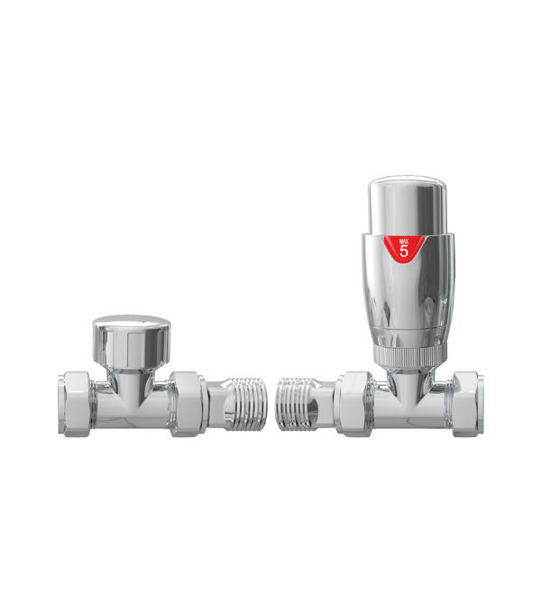The Round Thermostatic Chrome Straight Radiator Valves offer precise temperature control with a sleek chrome finish. Compatible with standard central heating systems, these 15mm connector valves come as a pair and are a direct replacement for the discontinued DIRA0110 model. Backed by a 1-year guarantee, they provide both style and functionality for modern heating setups.