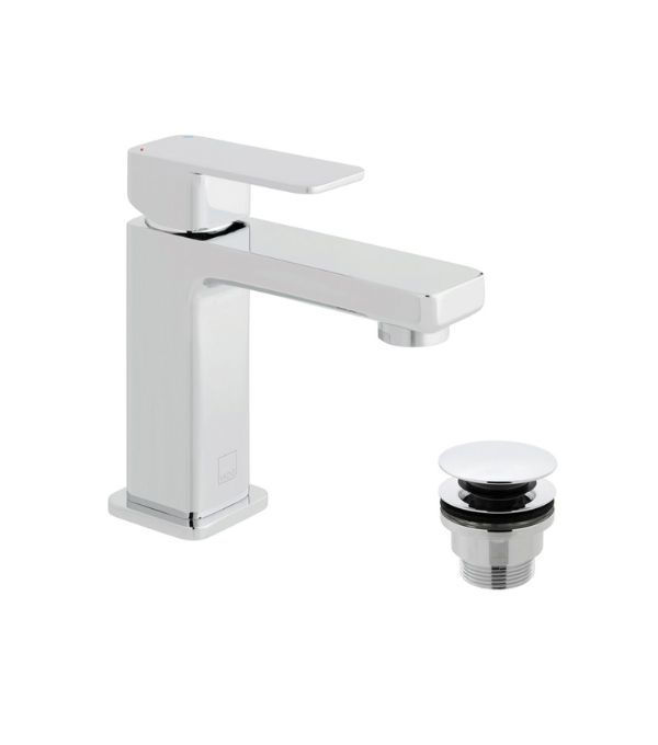 Vado Phase2 Smooth Mini Basin Mixer With Clicker Waste