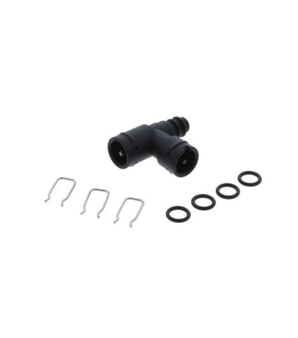 Genuine Vaillant 20144608 pressure gauge adapter in black, designed for accurate pressure monitoring on compatible Vaillant boilers. Easy to fit and reliable for precise boiler maintenance.
