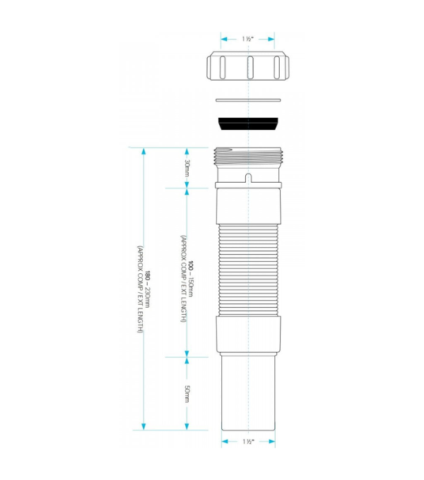 The Viva 1½″ Flexible Fitting – Compression × Plain Spigot WFLEX04 is a versatile waste connector designed for 1½″ pipework, featuring a plain‑end push‑fit tail and a compression outlet compatible with plastic, copper or lead pipes. Manufactured in high‑quality polypropylene, it provides a quick and reliable solution for awkward or retrofit installations.