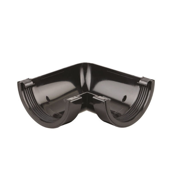 The Wavin Osma RoundLine OT003B 90° Gutter Angle in Black is a robust, semi-round inner corner fitting designed for smooth directional changes in 112mm guttering systems. Made from durable plastic, it's ideal for residential and commercial rainwater drainage installations.