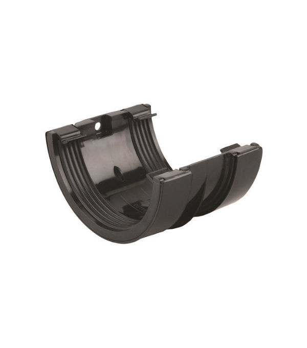 The Wavin Osma RoundLine OT005B Gutter Union & Bracket in black offers a secure and seamless gutter jointing solution. Made from durable PVCu with a 112mm diameter, it’s ideal for connecting and supporting semi-round guttering on exterior walls. Designed for quick installation and long-lasting performance.