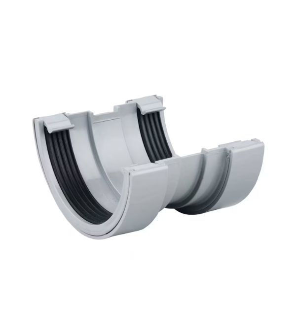 The Wavin Osma RoundLine OT009G Gutter Union (Grey, 112 mm) is a high-quality uPVC fitting designed to join two lengths of 112 mm RoundLine gutter. Its secure push-fit connection ensures a watertight seal, maintaining seamless water flow across your gutter system.