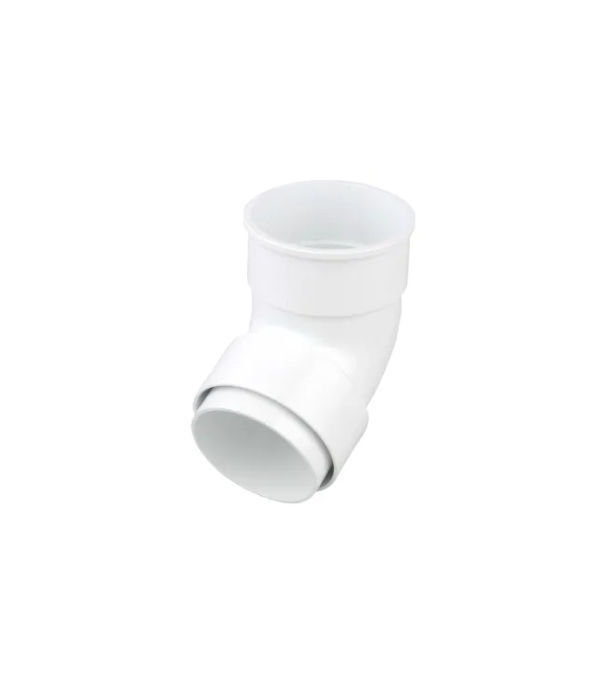 The Wavin Osma RoundLine OT025W Offset Bend 68mm White offers a reliable 67.5° angled solution for connecting round downpipes in rainwater systems. Made from durable PVC-U, this one-part white offset bend features a slide sleeve connection for a secure fit, perfect for domestic guttering applications.