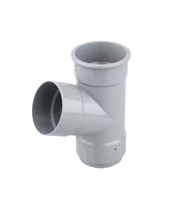 The Wavin Osma RoundLine T035G 68 mm Branch (Grey) is a high-quality uPVC fitting designed to split or connect multiple downpipe runs within a 68 mm RoundLine system. Perfect for routing rainwater from different gutter outlets into a single downpipe, it ensures efficient water flow and reliable system performance.