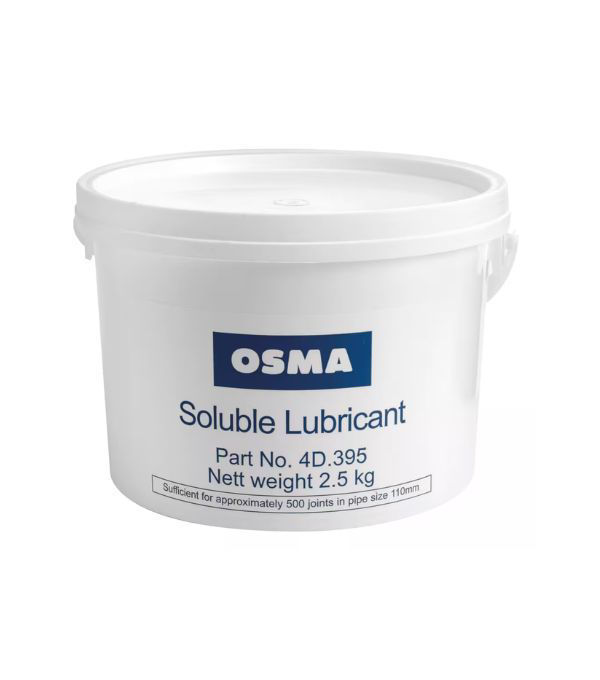 High‑performance Wavin OsmaD Joint Lubricant – 2.5 kg soluble formula designed to make PVCU and drainage pipe joints easy to assemble, reducing friction for secure, leak‑free connections on soil, waste and underground systems.